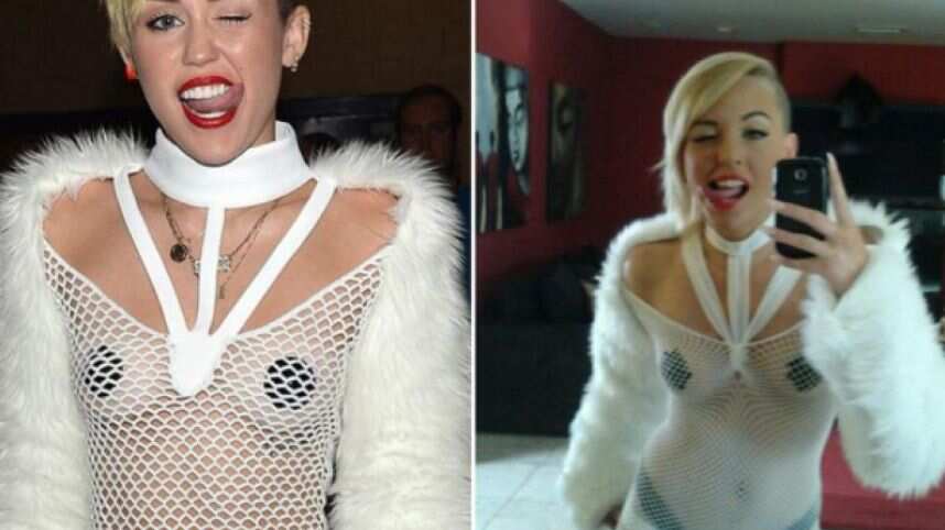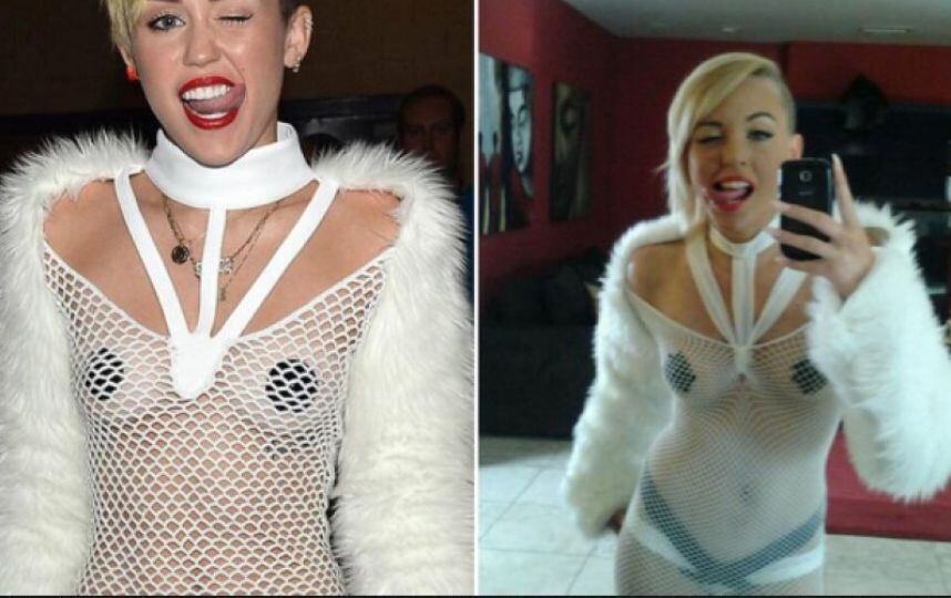 Se trata más ni menos que de la actriz porno Miley May , quien no ha dudado en explotar su parecido con la intérprete de ” Wreking Ball ” para hacerse de fama.