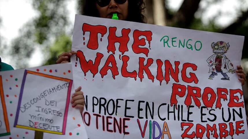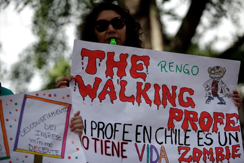 “Desde el 2001 estamos escuchando el mismo discurso de los Gobiernos de la Concertación y del de Piñera de mesas técnicas. El 2001 fue el Consejo Asesor de la Educación, el 2011 la mesa de expertos, y así sucesivamente puedo seguir nombrando mesas y mesas. Así nos han tratado de ‘engrupir’ durante todo este tiempo y finalmente no se consigue nada. Estamos cansados de mesas técnicas, arreglines, discusiones a puertas cerradas y propuestas insuficientes”, con esas palabras Jorge Muñoz, profesor miembro del Movimiento 50/50, describe su molestia hacia el Gobierno y la dirigencia central del Colegio de Profesores.