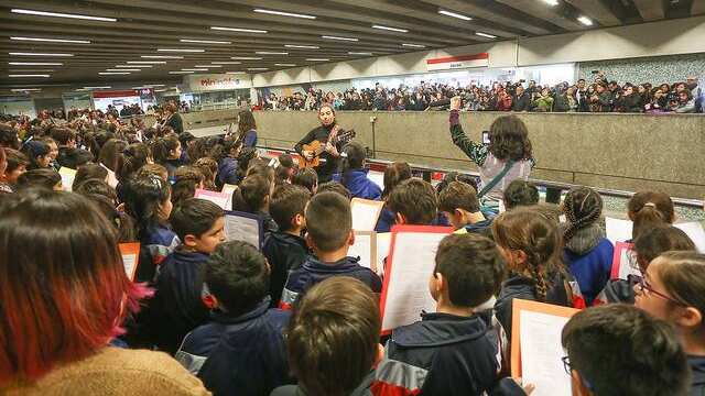 El Ministro de Cultura, Ernesto Ottone, llegó hasta la estación Universidad de Chile, del Metro de Santiago, para disfrutar de la presentación de los más de 230 estudiantes de ocho comunas de la región. Allí destacó que: “Ayer iniciamos la celebración de la quinta edición de la Semana de la Educación Artística, y en esta versión tenemos los cien años de Violeta Parra como motivación especial. Una de las actividades que hemos querido presentar y apoyar fuertemente son los coros ciudadanos, que en este caso consistieron en alrededor de 10 mil niños cantando simultáneamente en casi todas las regiones del país, para lo que se ha trabajado con distintos profesores de canto que nos ayudaron a ofrecer un concierto al unísono en todo el territorio”.