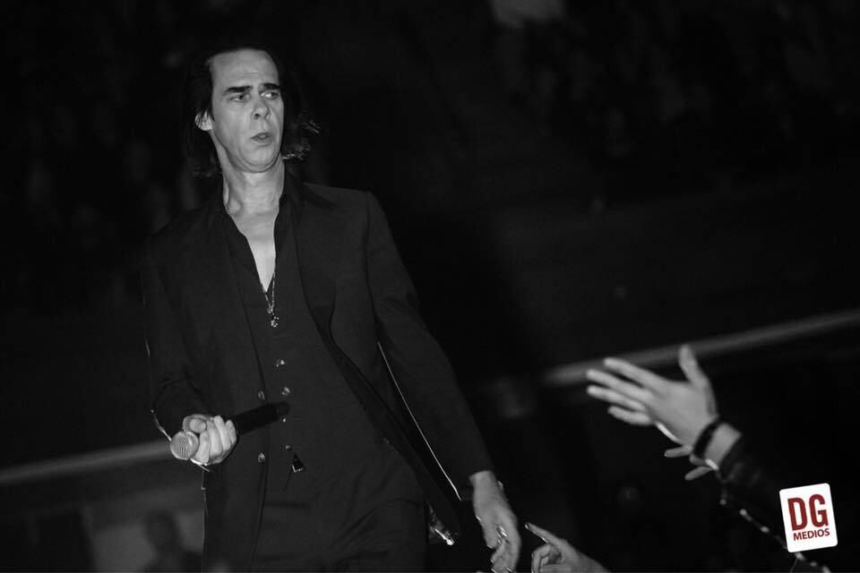 Como un verdadero mesías de la música, Cave desliza sus manos sobre las del público que responde a sus juegos líricos. «Bum, bum, bum!», grita el autor de 61 años mientras pregunta si pueden sentir su corazón en «Higgs Boson Blues», tonada de su penúltimo disco que homenajea a las voces icónicas del blues como Robert Johnson y en la que vierte todo el dolor en una línea: «¿A quién le importa lo que el futuro pueda traer?».