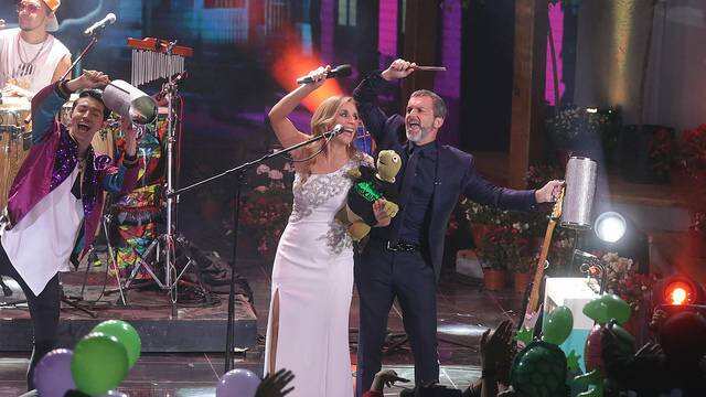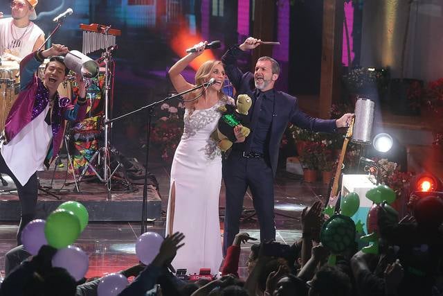 La noche comenzó con una exitosa presentación Pimpinela, donde los hermanos Lucía y Joaquín Galán interpretaron clásicos como “Olvídame y pega la vuelta” y “Dímelo delante de ella” con un rating promedio de 20,8 puntos entre las 22:30 y las 23:35. En el mismo horario, Canal 13 registró 5,1 unidades, Chilevisión 6,6 y Mega tuvo 10,7. Además marcaron peaks de 25 puntos.