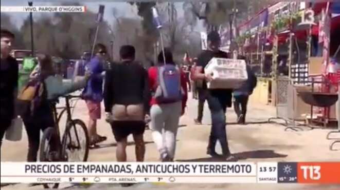 El ambiente festivo se siente en el aire por estas Fiestas Patrias. ¡Y díganselo a Canal 13! Y es que la señal del Grupo Luksic sufrió la broma de un asistente a las fondas del Parque O’Higgins.