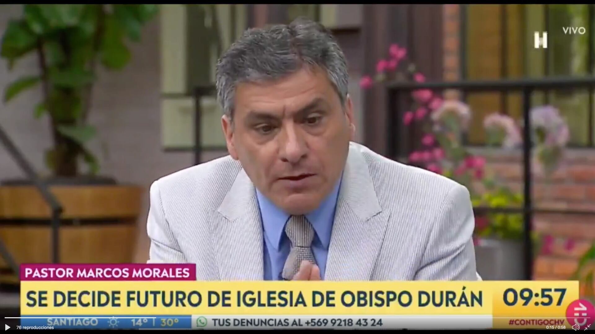 Otro tenso momento se vivió en el matinal «Contigo en la mañana de CHV», esta vez por la visita del Pastor evangélico Marcos Morales, quien sin problemas defendió la administración que el Obispo Durán hace del diezmo que recibe su iglesia de los feligreses. Sin embargo, la discusión fue escalando y terminó con la conductora del espacio, Monserrat Alvarez increpando al pasto «¿Me deja terminar?», le señaló la periodista a lo que la insistencia del pastor le obligó a subir el tono «sabe lo que pasa, si no me deja hablar, realmente le dejo el programa para usted solo», le recriminó. A lo que el pastor respondió «bueno me pueden echar como echaron en otro programa», aludiendo al episodio vivido entre Tonka Tomicic y Hermógenes Perez de Arce.
