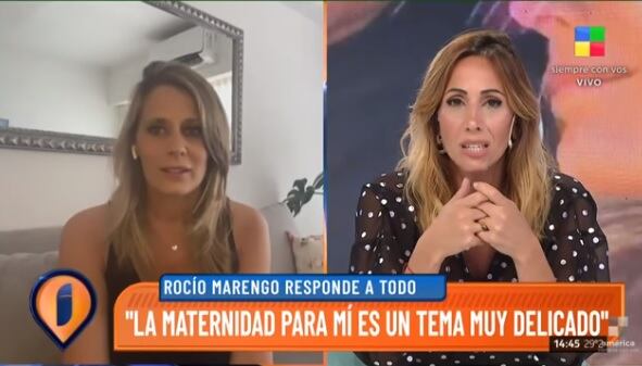 Consultada si su pareja quiere ser padre nuevamente, Rocío Marengo afirmó que «la primera que tiene que estar decidida soy yo, más que nada por lo que me genera y por las cosas que no se han dado».