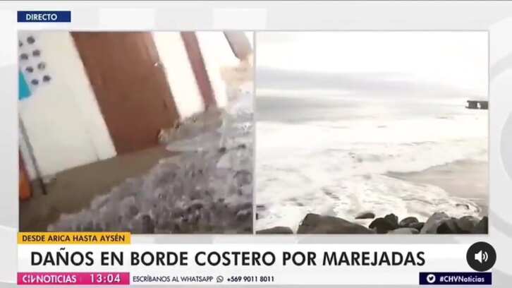En un video rescatado por Televisivamente y posteado en Instagram, se puede cómo el periodista Carlos Caucota debió salir corriendo para escapar de las olas. El equipo de CHV estaba haciendo un despacho desde el sector 4 de Reñaca, donde conversaban con un locatario sobre los daños de este fenómeno.