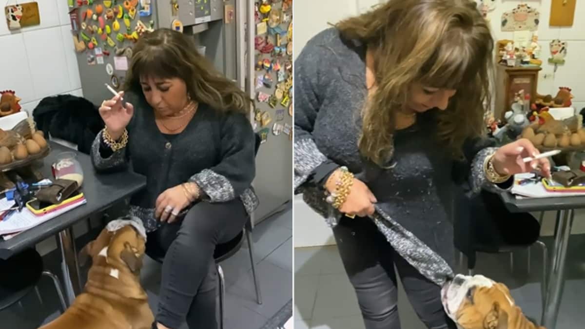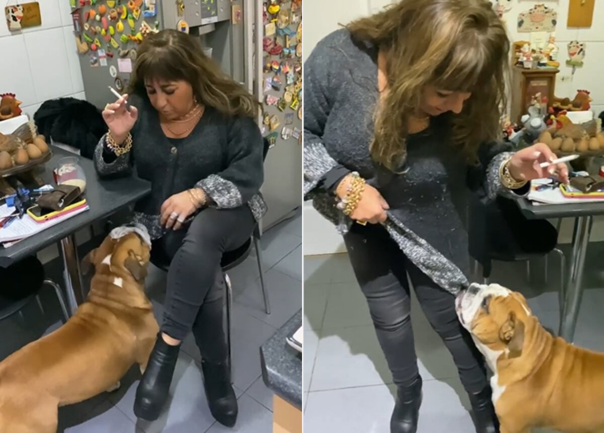 «Retírate de la cocina», le señala al perro, el cual no se mueve. «No obedece», señala finalmente, hasta que segundos después el can se va de la cocina.