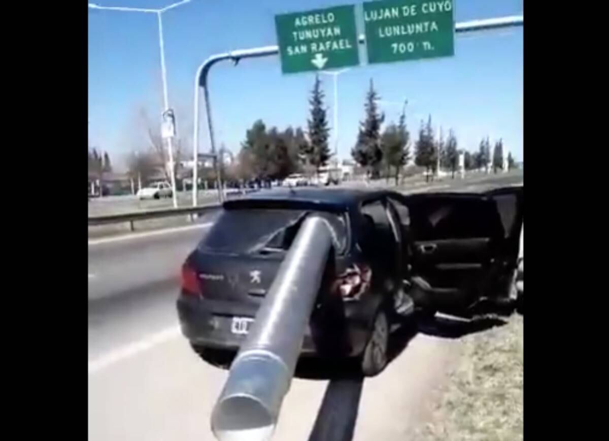 Una salvada milagrosa fue la que tuvieron cinco ciudadanos argentinos cuando un tubo de acero de grandes proporciones se incrustó por la parte de atrás del auto en que viajaban.