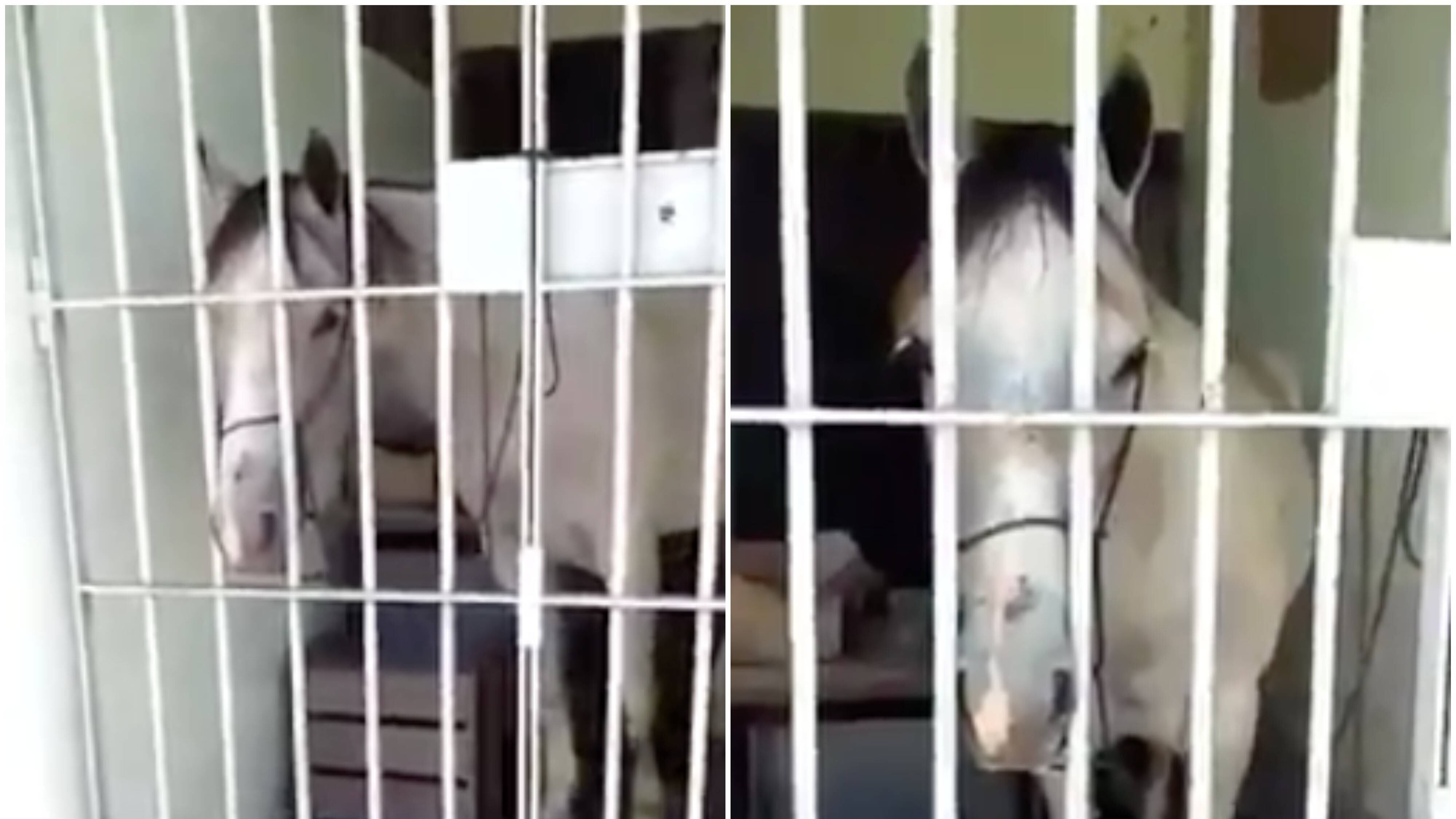 Wiliams grabó un video (donde se ve al caballo dentro de celda) y denunció que lo tuvieron sin comida ni agua en un espacio mínimo “como si fuera un criminal”.