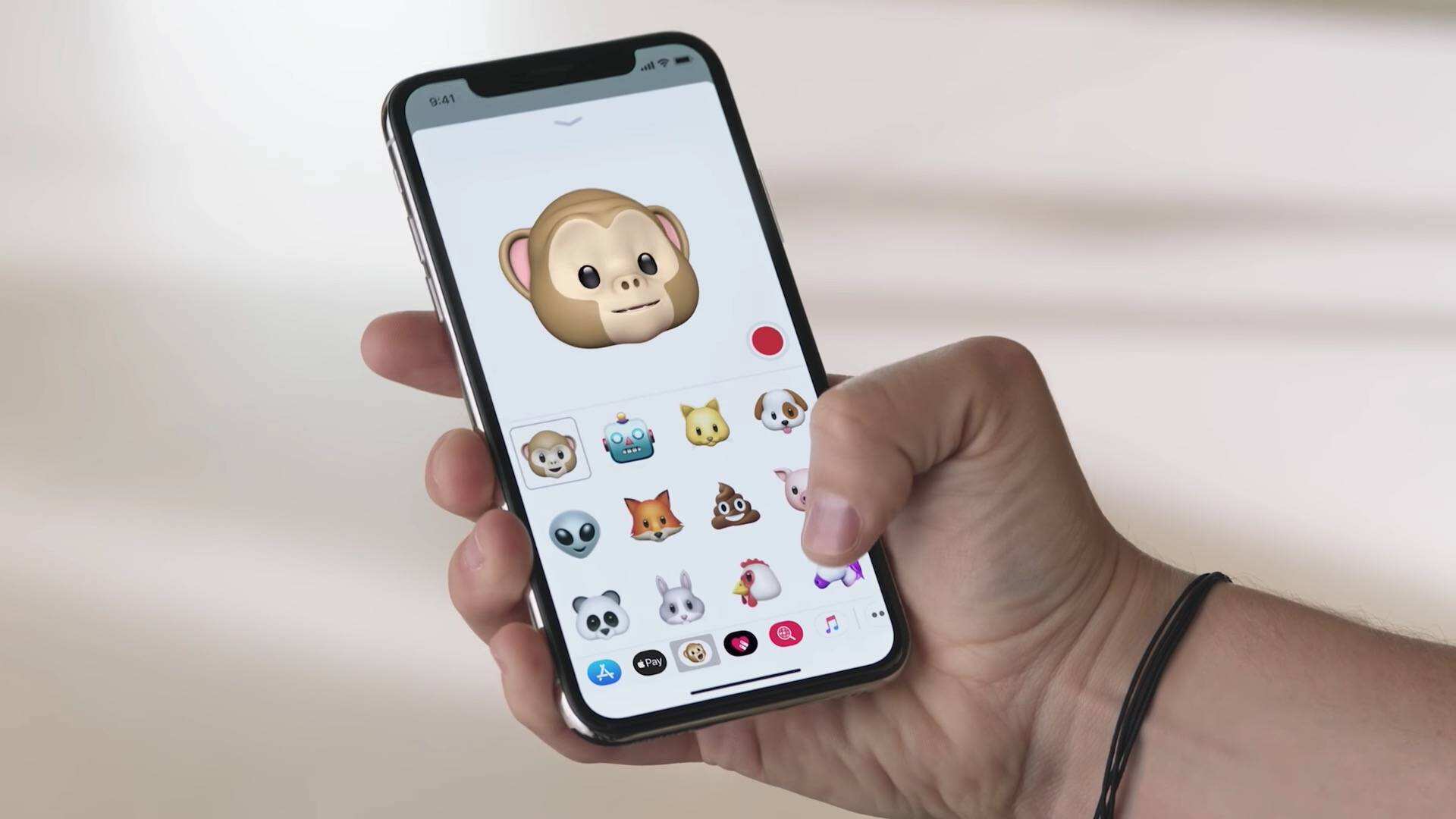 - Selecciona el Animoji que más te guste (al lado izquierdo de la pantalla).