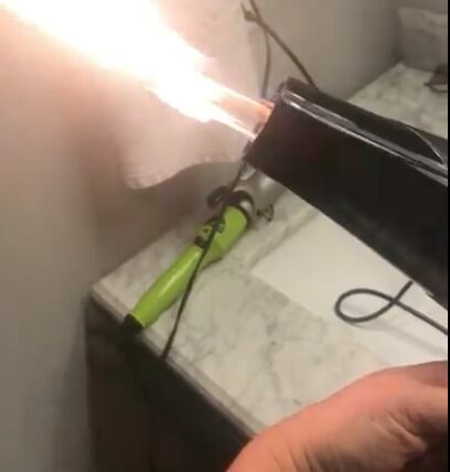 La mujer publicó en su cuenta de Facebook un par de videos de como el producto para secar su cabello expulsaba fuego cada vez que lo prendía.