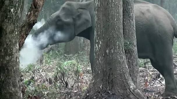 Según el biólogo, el elefante habría estado consumiendo “carbón de leña”. Recogía con su trompa los pedazos del suelo y luego botaba las cenizas, lo que hacía parecer que estaba botando humo.