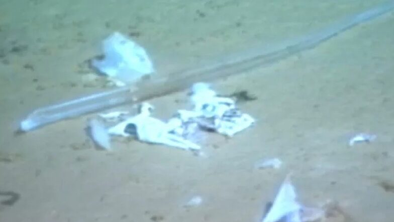 “El récord más profundo fue una bolsa de plástico a 10.898 m en la fosa de Mariana. Se observaron organismos de aguas profundas en el 17% de las imágenes de desechos de plástico, que incluyen el enredo de bolsas de plástico en las comunidades de filtración química quimiosintética”.