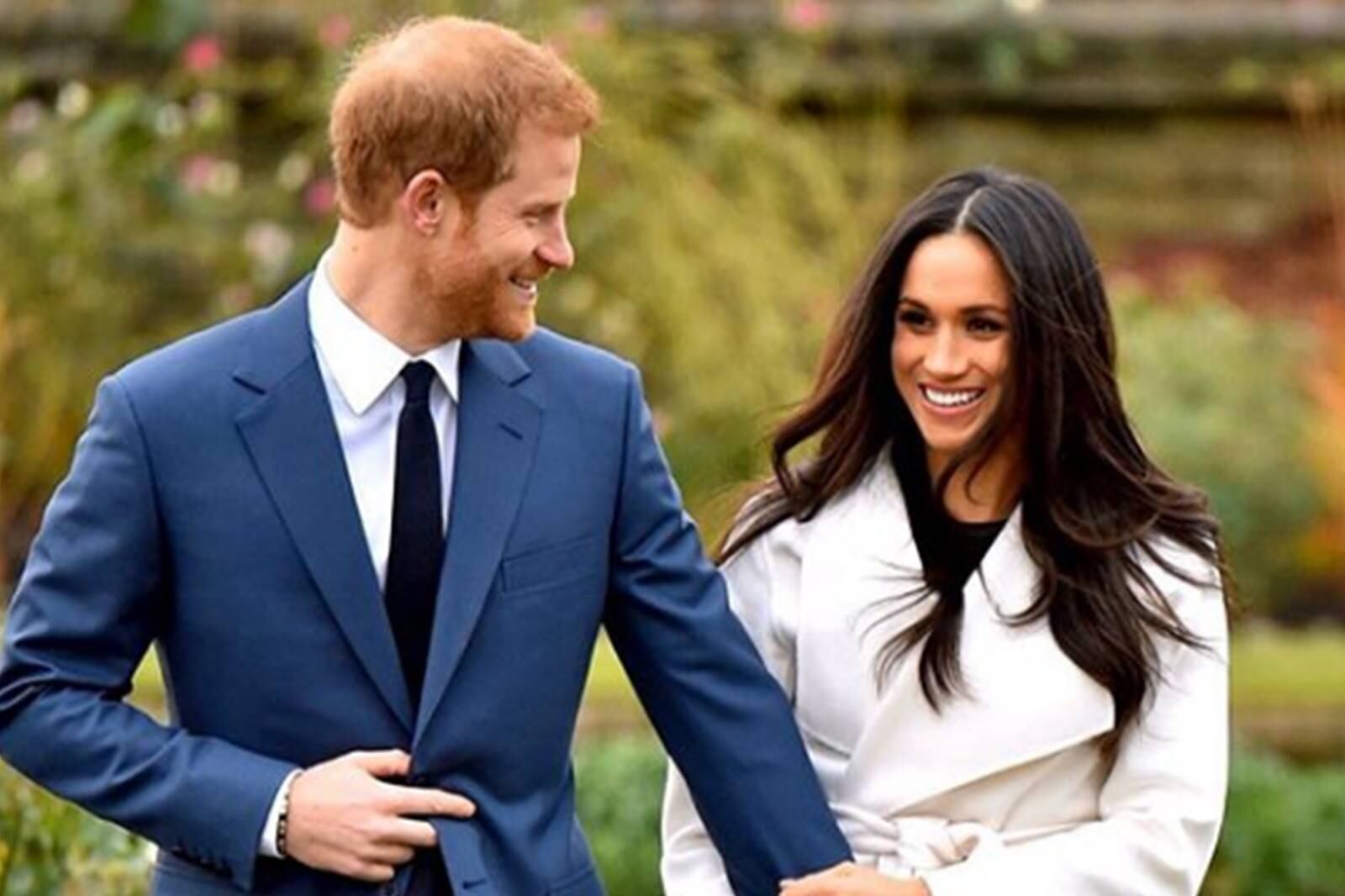 La esposa de Harry deslumbró con un vestido azul midi manga corta y cuello caja de Victoria Beckham, pero lo que más sorprendió fue su maquillaje.