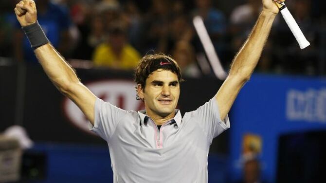 Roger Federer celebra tras vencer a Jo-Wilfried Tsonga, lo que le permitió acceder a las semis del Abierto Australiano. (Foto: Agencia Uno)
