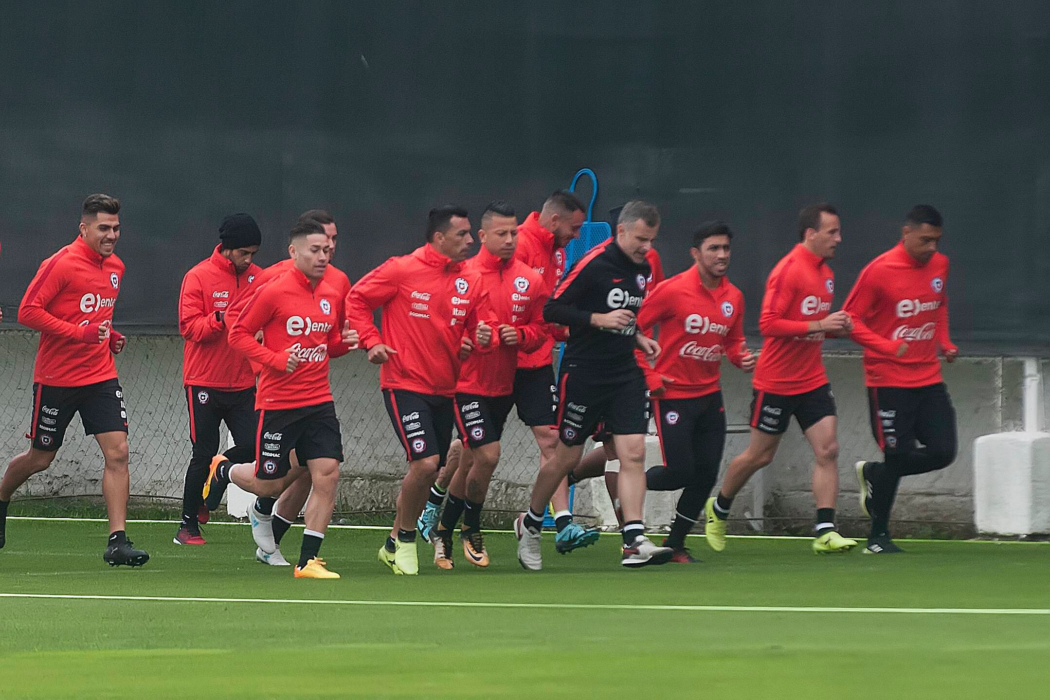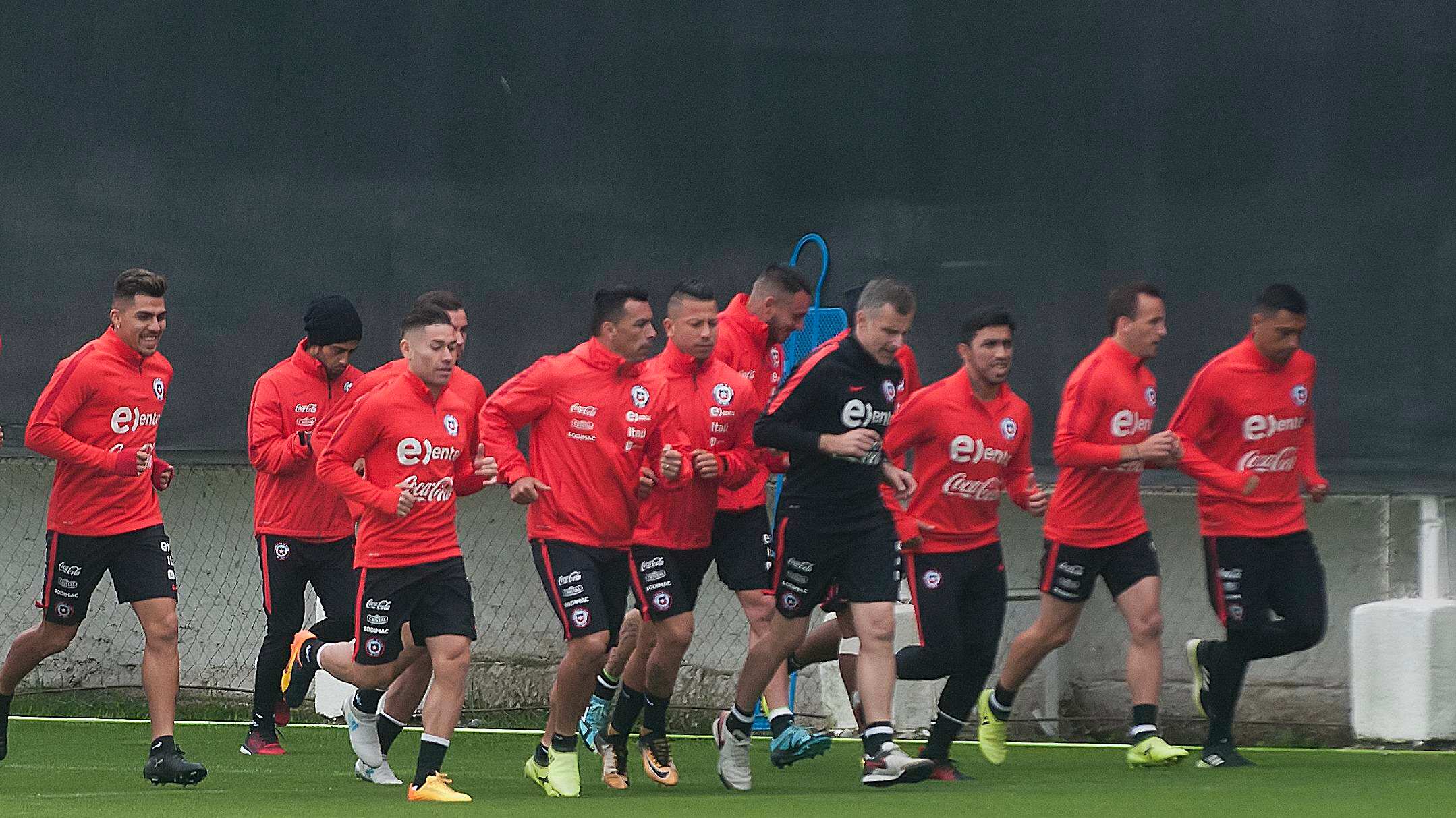 Luego de la conferencia de prensa en la que participaron Claudio Bravo y Gonzalo Jara, el plantel de la Selección Chilena de Fútbol entrenó en Juan Pinto Durán antes de partir al Aeropuerto de Santiago. Pese a no estar confirmados en la formación titular para el duelo contra los brasileños, Arturo Vidal y Charles Aránguiz realizaron trabajos físicos.