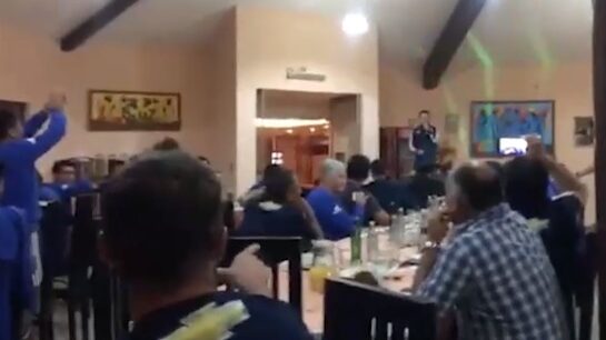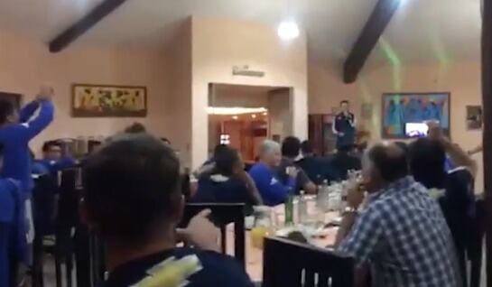 Felipe Saavedra y Angelo Araos tuvieron que cantar delante de todo el plantel durante la cena en el hotel en el que están hospedando. Ambos jugadores tuvieron que dar lo mejor de sí para quedar bien con sus compañeros, que los animaban con todo.