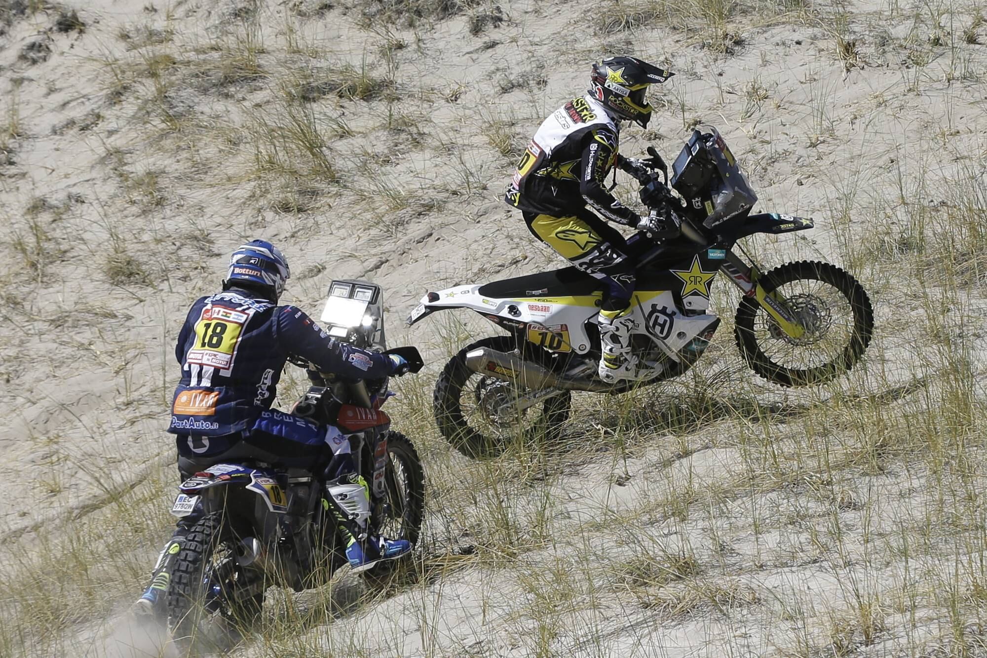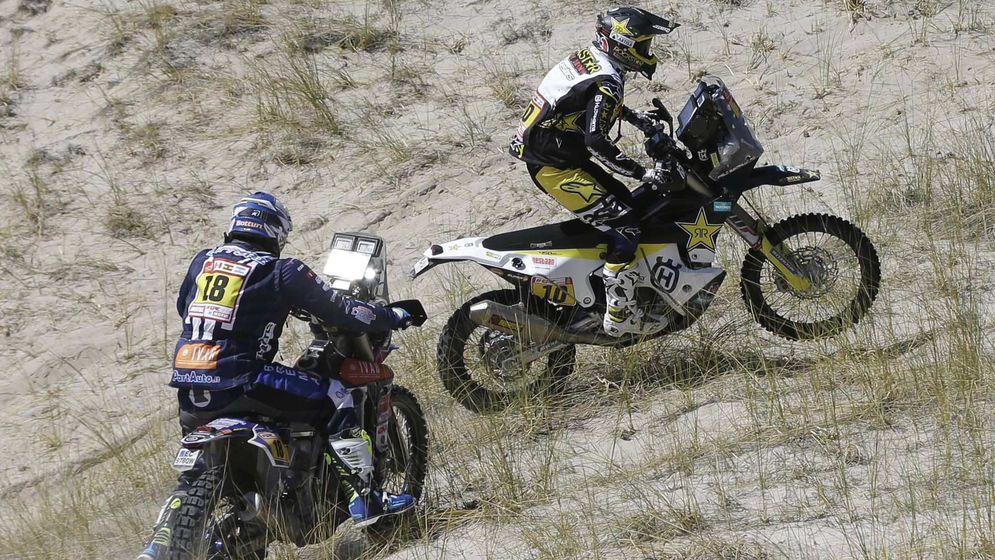 Mientras el francés de Yamaha sufrió una caída que le obligó a retirarse, el argentino de Honda se perdió junto a otros pilotos de punta y perdió largos minutos tratando de volver al recorrido. La situación fue aprovechada por Matthias Walkner, quien ganó la etapa y escaló al primer lugar de la categoría para sacarle casi 40 minutos de ventaja a su más cercano perseguidor, Joan Barreda Bort.