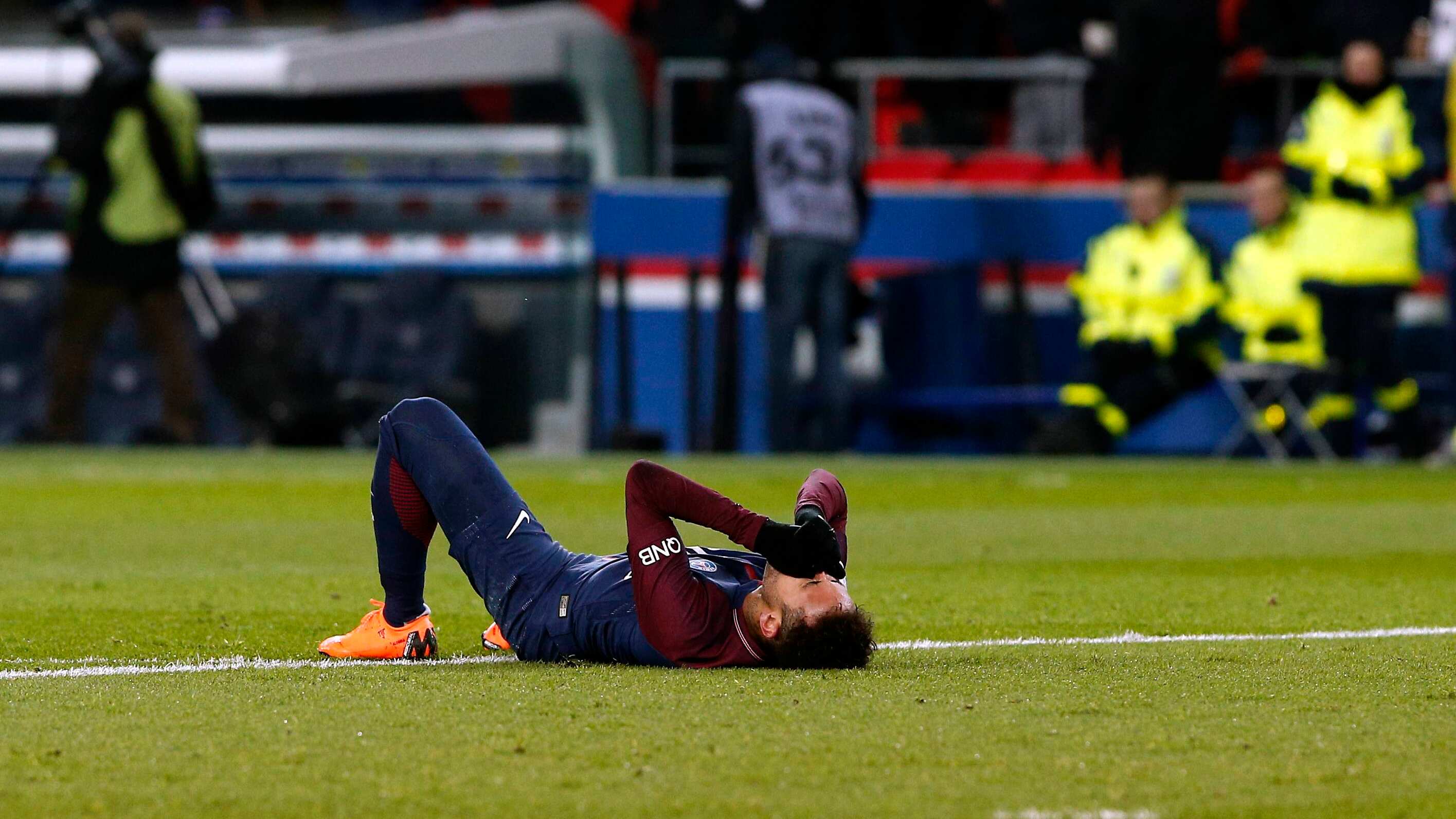 Cuando se jugaban 77 minutos de la victoria del PSG por 3 a 0, el astro brasileño se lastimó el tobillo en la pugna por un balón y mientras era retirado de la cancha comenzó a llorar y se llevó las manos a la cara con claras señales de dolor.