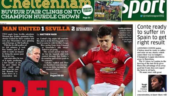 Entre los títulos más destacados en la prensa británica, y con Alexis de protagonista, destacan el The Guardian: «Abajo y afuera. Terrible presentación del United, lo deja fuera de la Champions League»; The Telegraph: «Caras Rojas. United fuera de Europa luego de la vergonzosa e inepta presentación ante la escuadra española» y Metro Sport: «Rojo y enterrado. El United choca con escándalo, con Sevilla aturdiendo a Old Trafford».
