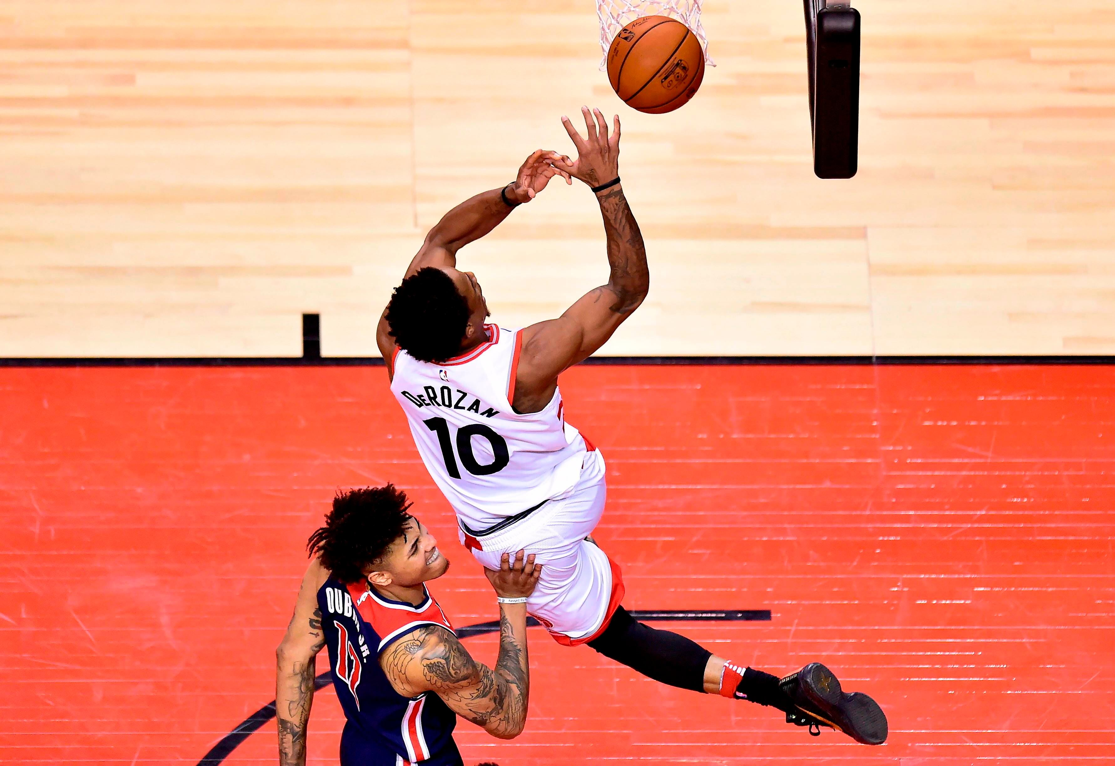 DeRozan igualó la mejor cifra de su carrera en playoffs, al anotar 37 puntos, y llevar a Toronto a derrotar 130-119 a los Wizards de Washington para ampliar su delantera en la serie de primera ronda.