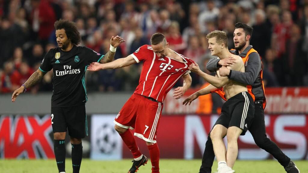 Sin embargo, el hincha no lo hizo del mejor modo y tomó a Ribery por sorpresa agarrándolo de la camiseta, antes que fuera detenido por los guardias que lo perseguían.