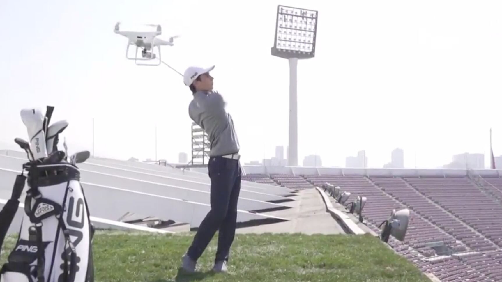Por esto, el Team Chile desafió a Niemann a una hazaña en el Estadio Nacional: meter un hoyo en uno desde el techo del recinto de Ñuñoa hasta la mitad del campo de juego.