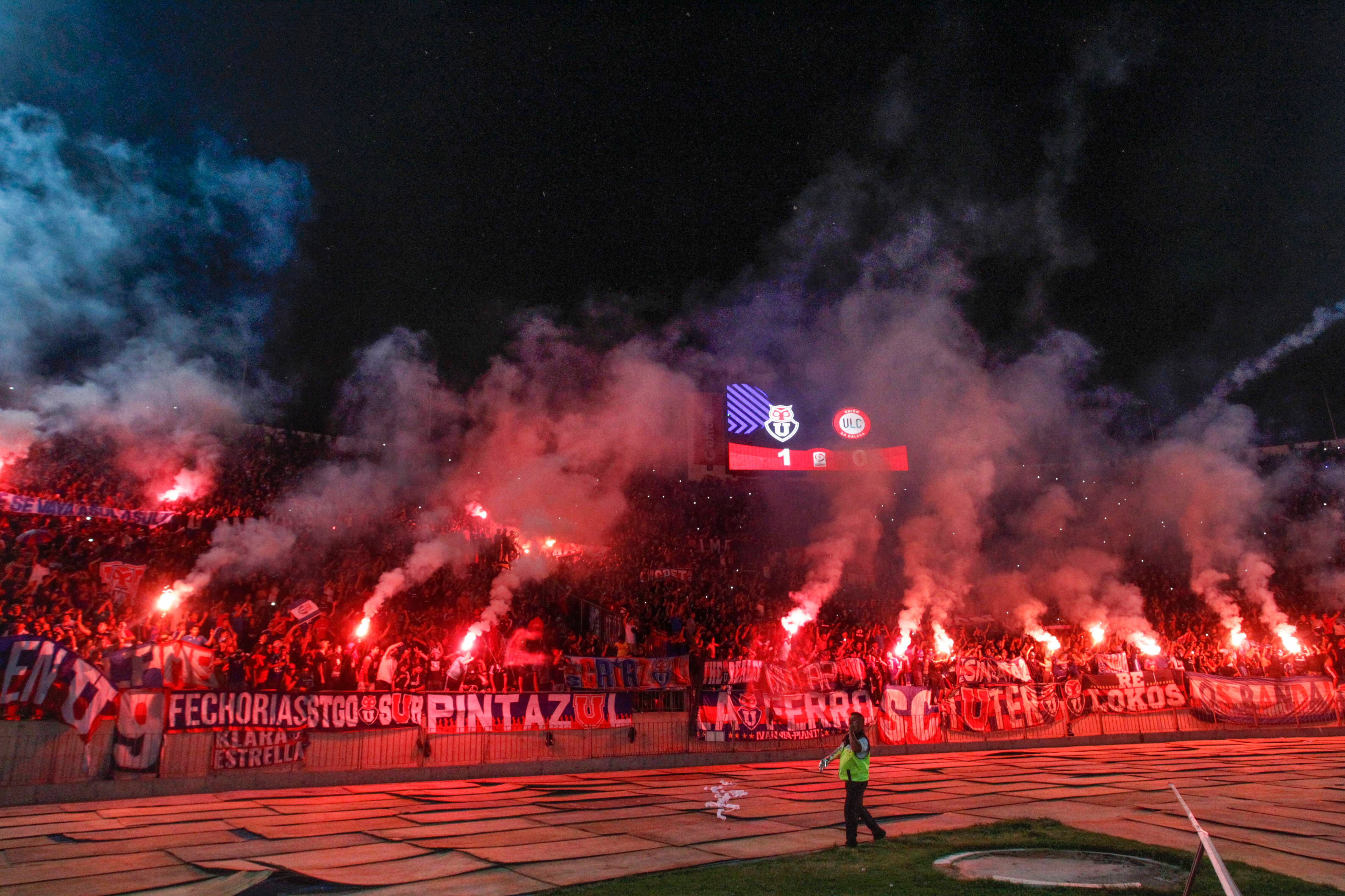 Universidad de Chile no para de sumar malas noticias en el 2019. Además de los resultados que los tienen en el penúltimo lugar de la tabla del Campeonato Nacional 2019 y la crisis dirigencial en Azul Azul, ahora tienen otro problema por el comportamiento de sus hinchas en el partido que jugaron este domingo en el estadio Nacional ante Unión La Calera, donde los fanáticos se manifestaron con el lanzamiento de bengalas, fuegos de artificio y bombas de humo.