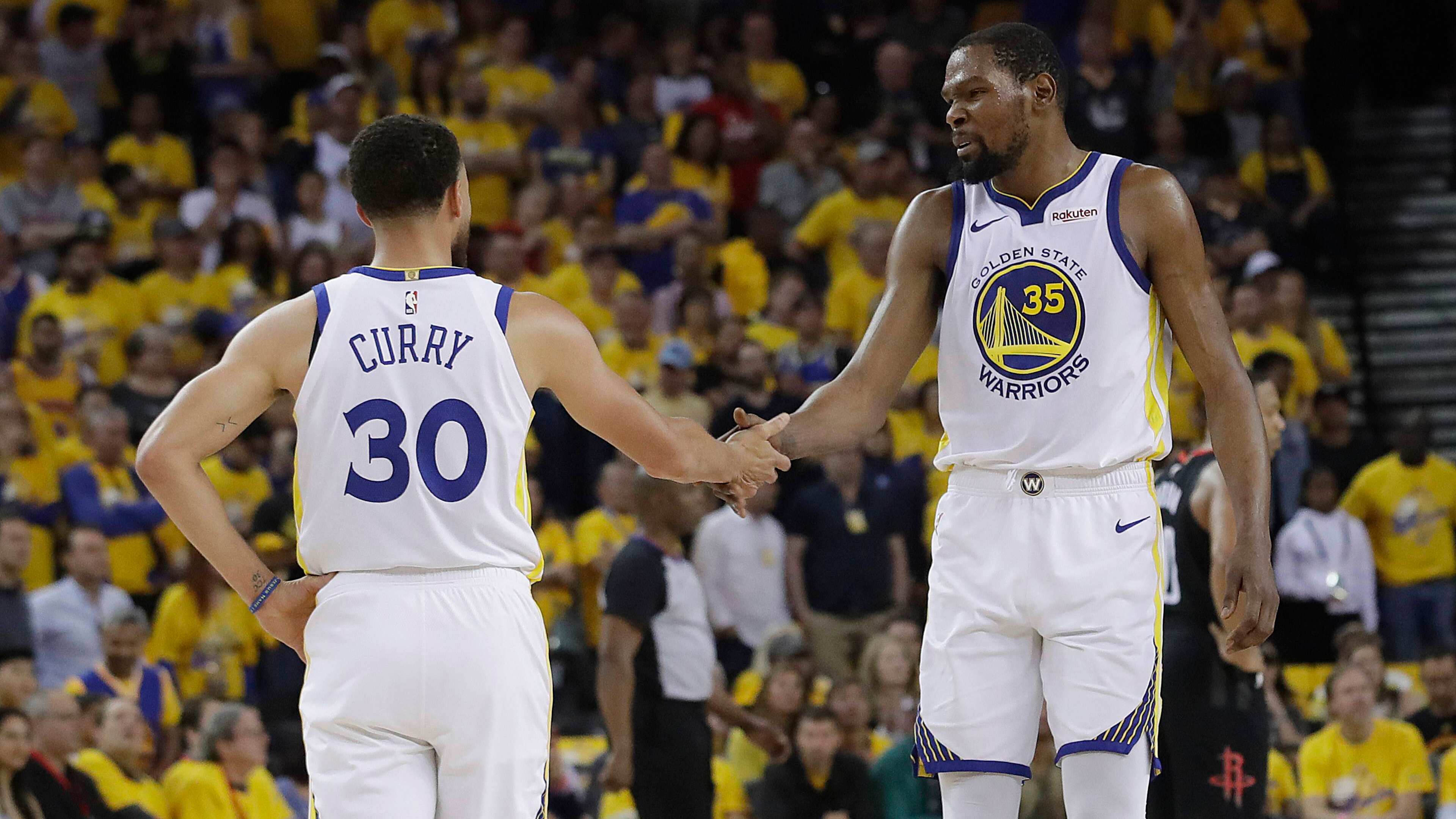 En el primer partido, Kevin Durant anotó 35 puntos al llevarse el duelo ante James Harden, y los Warriors lograron resistir el domingo para vencer 104-100 a los Rockets en lo que promete ser una sensacional serie al mejor de siete partidos.