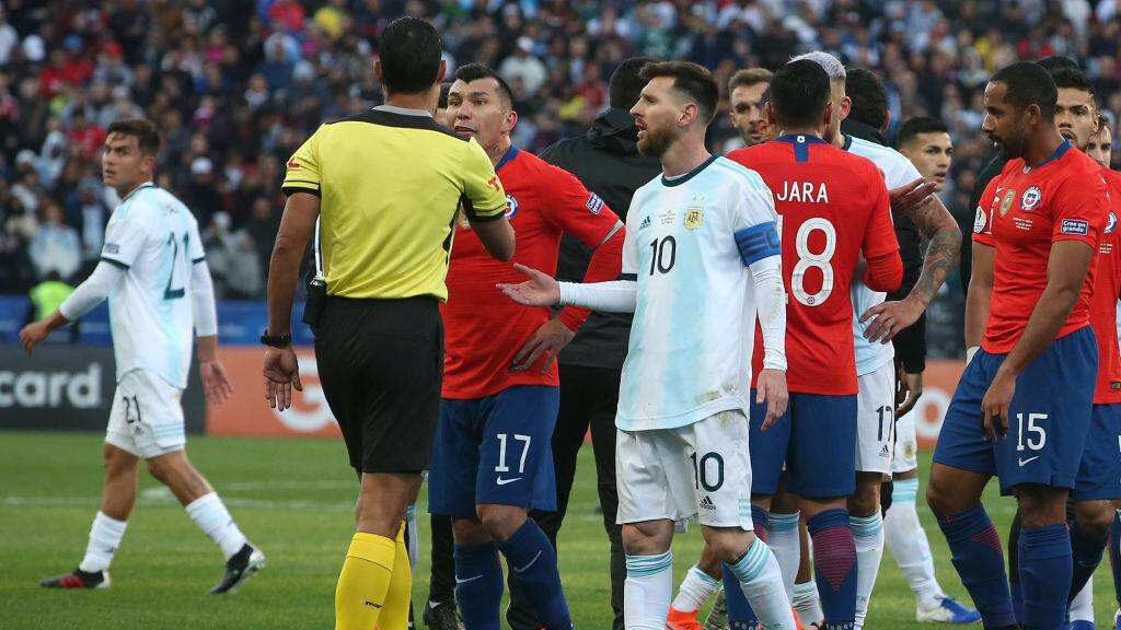 El duelo por el tercer puesto de la Copa América entre Chile y Argentina quedó marcado por lo ocurrido en el minuto 37, cuando fueron expulsados por el árbitro Mario Díaz de Vivar, los dos capitanes. Es que Gary Medel reaccionó a un empujón de Lionel Messi y luego lo encaró con pechazos y por esta acción, ambos vieron la tarjeta roja.