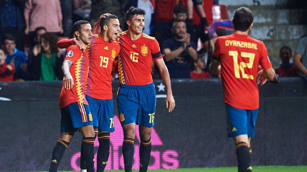 España continúa con paso firme en las clasificatorias para la Eurocopa 2020. Los hispanos golearon por 4-0 a Islas Feroe en el estadio El Molinón, con dobletes de Rodrigo Moreno (13′ y 50′) y de Paco Alcácer (89′ y 90+2′), el equipo dirigido por Robert Moreno se impuso sobre el combinado isleño en Gijón. Con este triunfo, la Roja europea sigue puntera del grupo F con 18 puntos. En tanto, Islas Feroe continúa relegado en el último lugar sin unidades.