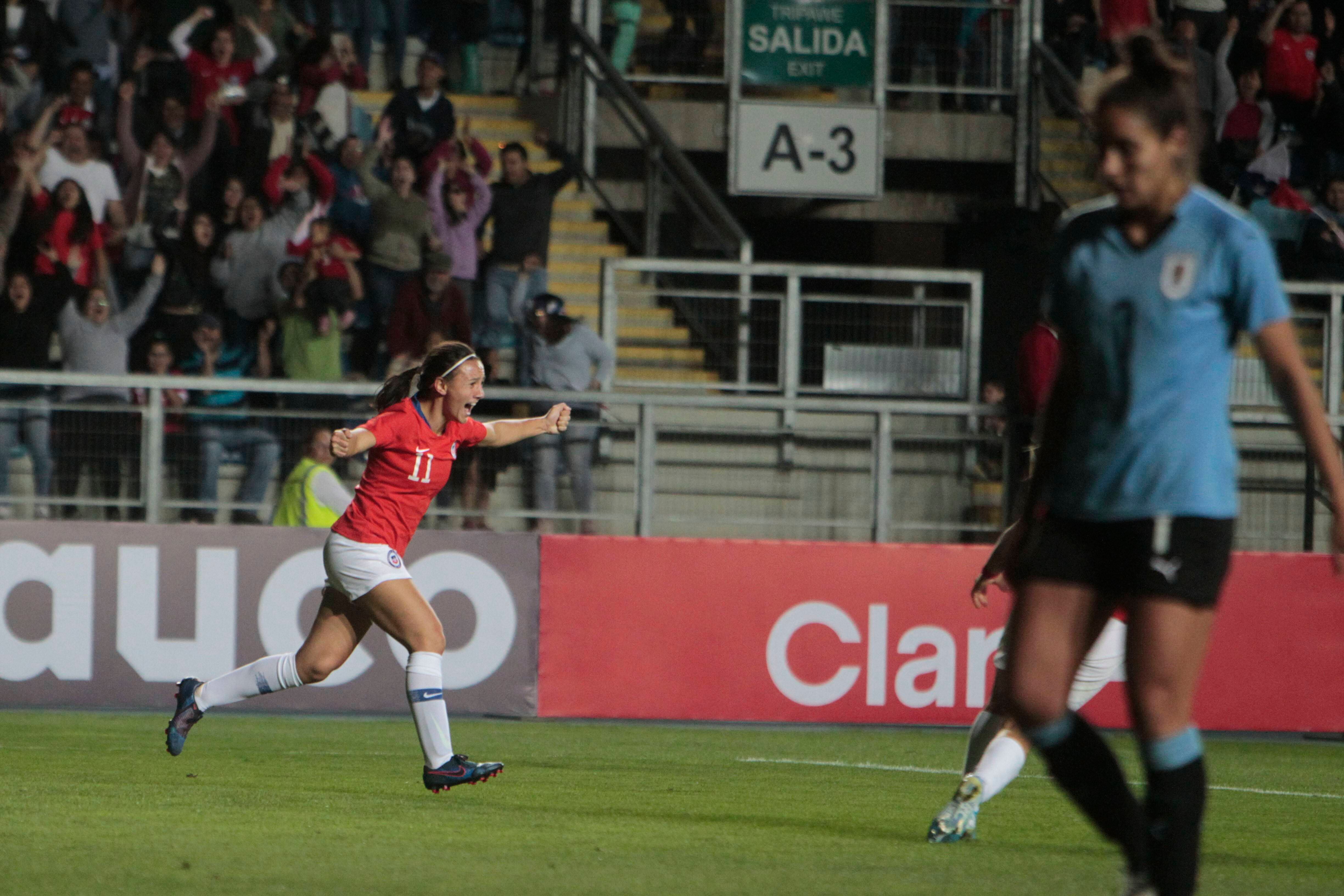 En la revancha en Rancagua ante las celestes la ariete ingresó a los 78′ por María José Urrutia. Antes que termine el partido la jugadora de la Universidad de Florida tomó un rebote y luego de un gran contragolpe definió de mejor manera por sobre la portera charrúa, convirtiéndose en la primera jugadora de origen Rapa Nui en convertir un gol.
