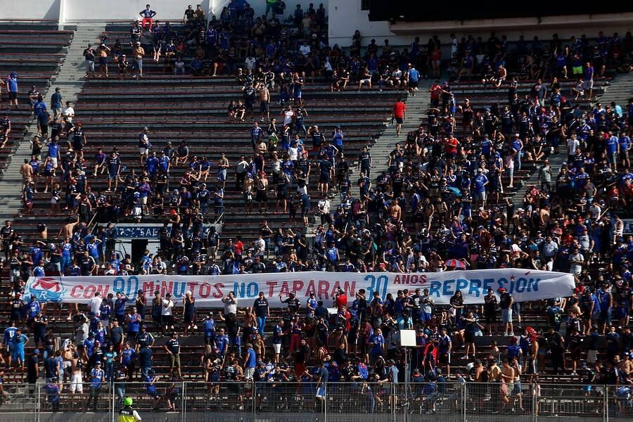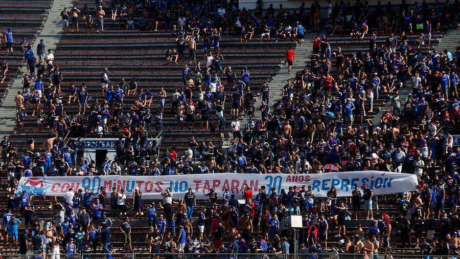 No obstante, el partido siguió con su curso normal y pese a la baja convocatoria, los hinchas azules que asistieron al establecimiento ubicado en Ñuñoa, exhibieron un lienzo en forma de protesta, por la muerte de Jorge Mora Herrera, quien fue atropellado por Carabineros el pasado martes tras la victoria de Colo Colo por 3-0 sobre Palestino.
