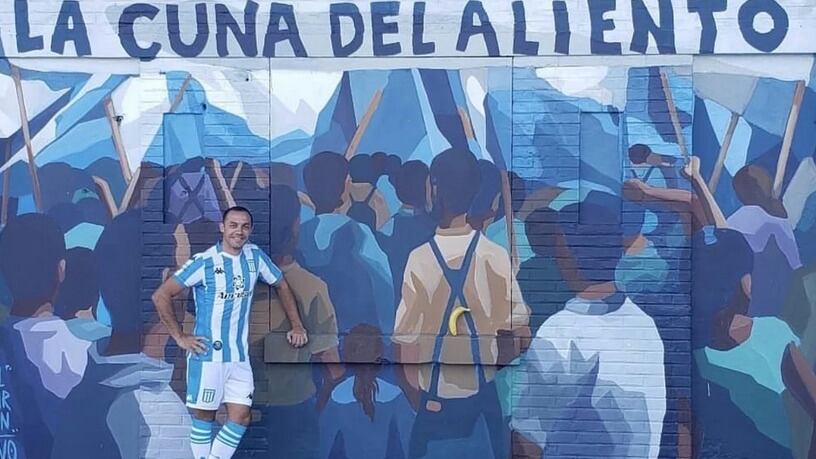 Ahora, «Carepato» fue modelo en la presentación de la nueva indumentaria de la «Academia». Con ella posó junto a un mural del club y un plátano, la fruta que comió en plena cancha justo antes de su celebrado tanto, imagen que se viralizó de inmediato.
