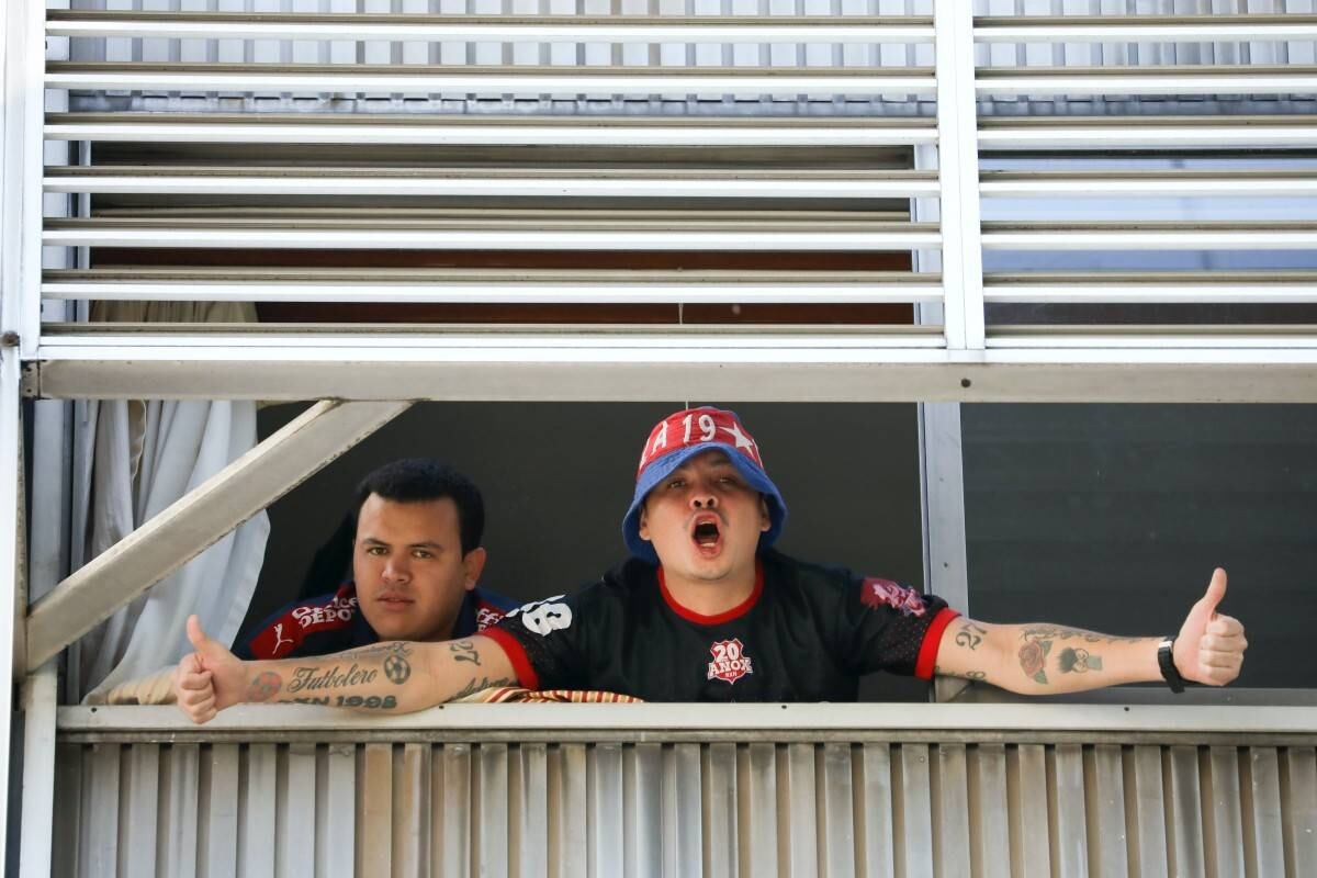 Desde principios de abril, los hinchas están alojados en uno de los hoteles que dispone la alcaldía de Buenos Aires para alojar a extranjeros y argentinos llegados del exterior que deben guardar cuarentena.