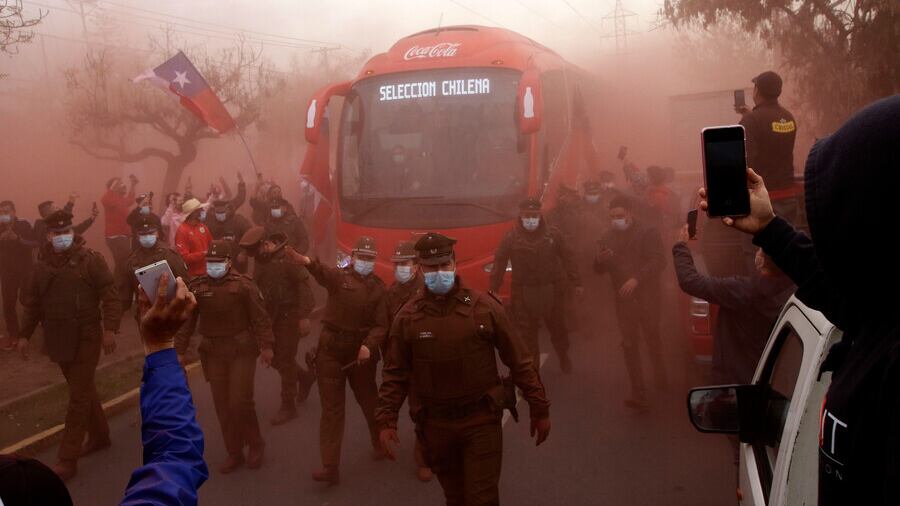 Pese al estado de pandemia un grupo de hinchas de la selección chilena llegó hasta avenida Las Torres en la comuna de Macul para entregarle su apoyo a la Roja.