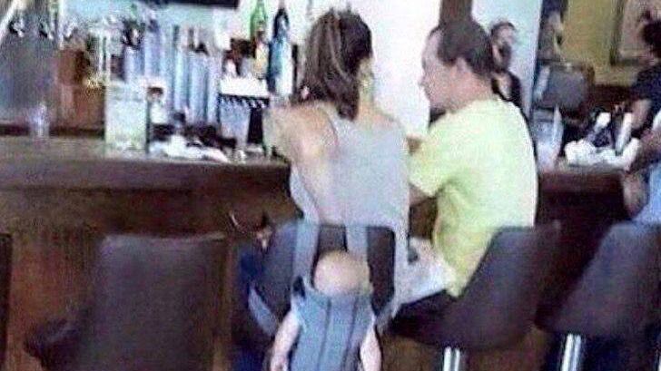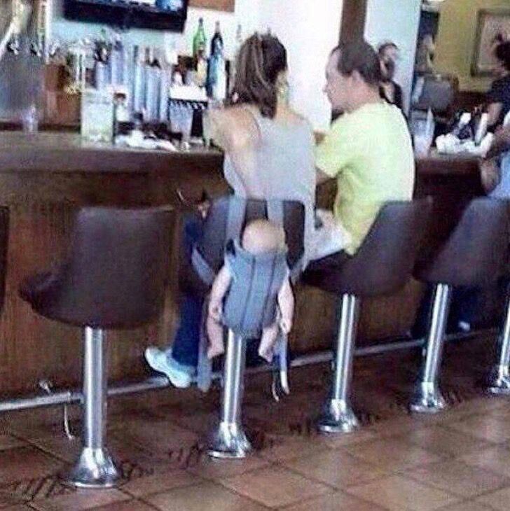 Todo un escándalo en Reddit es la foto de un bebé colgado a una silla, mientras su madre bebé en un bar.