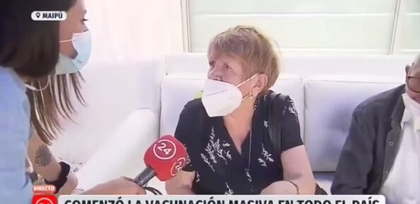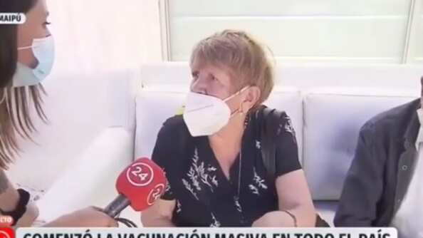 La señora, que estaba realizando su vacunación en Maipú, aseguró que no sintió nada al momento de recibir la primera dosis y que «no fue dolorosa, pero muy poquito, un pinchazo apenas y no he tenido ninguna reacción».
