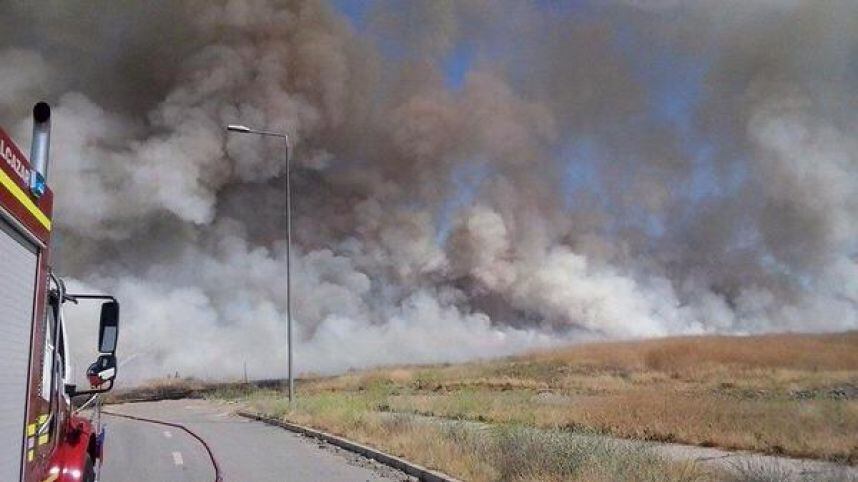 Un feroz incendio afecta estos momentos a unos pastizales en el Parque Bicentenario, ex aeropuerto de Cerrillos, en avenida Pedro Aguirre Cerda.