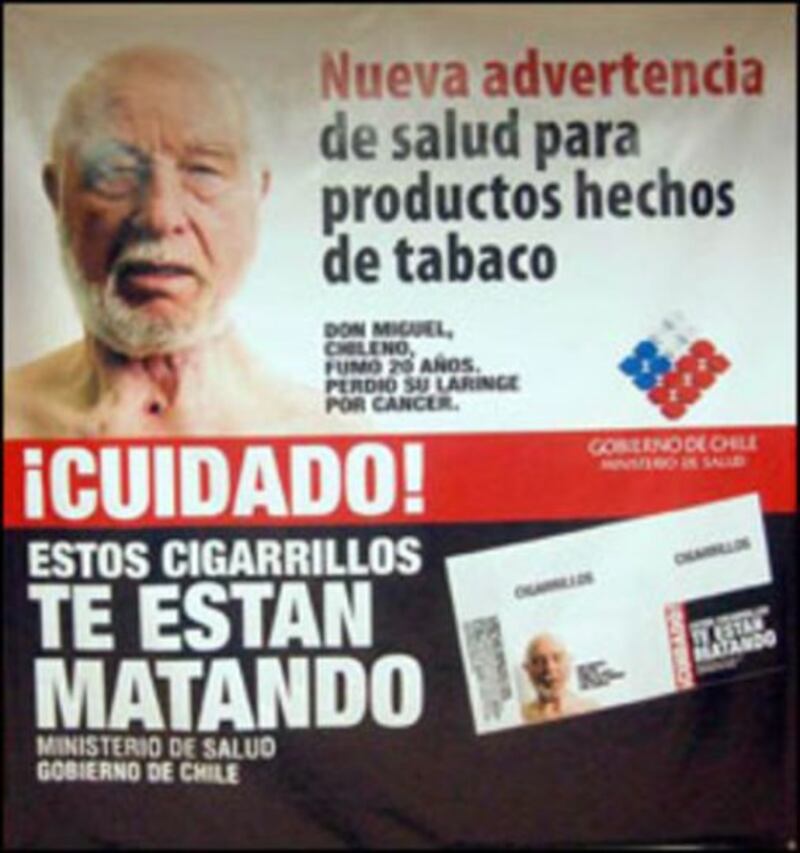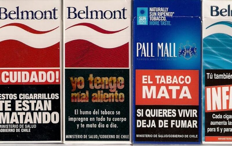 En el caso de Chile, el aviso ocupa el 50% de ambas caras de la cajetilla, figurando en el lugar 33 en el ranking internacional.