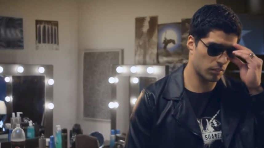 Así es, el delantero charrúa cambió por unos instantes los zapatos de fútbol y las espinilleras por la guitarra y las gafas oscuras. Suárez, quien es uno de los principales artífices de que los Reds coqueteen con el campeonato de la Liga inglesa -algo que no logran desde 1990-, aparecerá en un comercial de una marca refresquera con un look rockero, como si estuviera preparándose para dar un concierto.