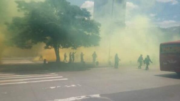 La marcha por la salud que se realizó este miércoles en Medellín terminó luego de que el Escuadrón Móvil Antidisturbios de la Policía la impidiera en plena Avenida Oriental de la ciudad. Se ve cómo los agentes del ESMAD lanzan cartuchos llenos de gases para dispersar a la multitud, obligando que algunas personas se atraviesen en el tráfico de la vía.