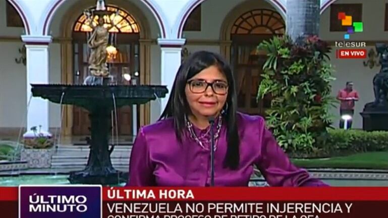 «La OEA persistió en acciones intrusivas contra la soberanía de nuestra patria y por ende procederemos a retirarnos de la organización», afirmó Rodríguez desde el Palacio presidencial de Miraflores en una declaración transmitida por el canal estatal VTV.