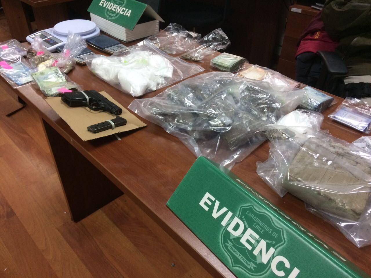 Todos los detenidos fueron puestos a disposición de la Fiscalía para su formalización por los delitos dispuestos en la ley 20.000 y de control de armas.