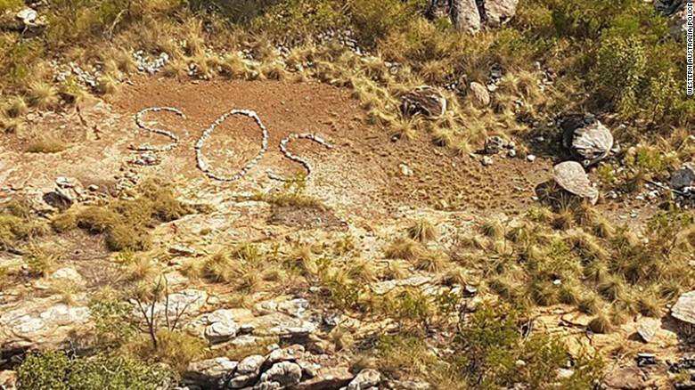 Un piloto que volaba en Swift Bay en Kimberleym, la zona al norte de Australia más remota del país, se encontró con una gran sorpresa al ver que en el suelo estaba escribo un «S.O.S.» gigante con piedras.