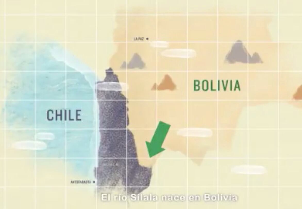 “Por más de 8.400 años el avance del río Silala ha formado una quebrada en pleno desierto, hoy llegan a Chile 170 litros por según do en promedio, como atraviesa por más de un país, el Silala es lo que se conoce como un río internacional, esto significa que todos los países que reciben agua de este río tienen derecho a usarlo razonable y equitativamente”, explica el clip.