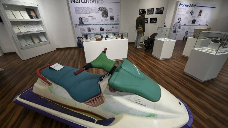 El museo fue inaugurado en el marco del 25 aniversario de la Fiscalía y tiene como fin acercar al público objetos incautados en procesos judiciales, entre los que también destacan una moto de agua del narcotraficante Pablo Escobar y tres computadores que pertenecían a las Fuerzas Armadas Revolucionarias de Colombia (FARC), actualmente en proceso de reintegrarse a la vida civil.