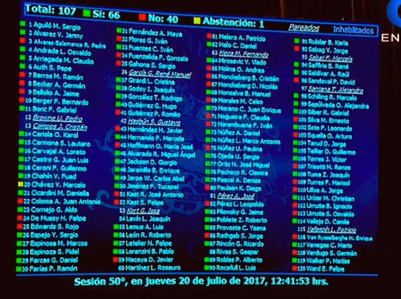 Con 66 votos a favor, 40 en contra y una abstención, la Cámara de Diputados aprobó las enmiendas del Senado en proyecto de aborto en tres causales, sin embargo, al no alcanzar el quórum necesario la iniciativa deber ser vista en Comisión Mixta.