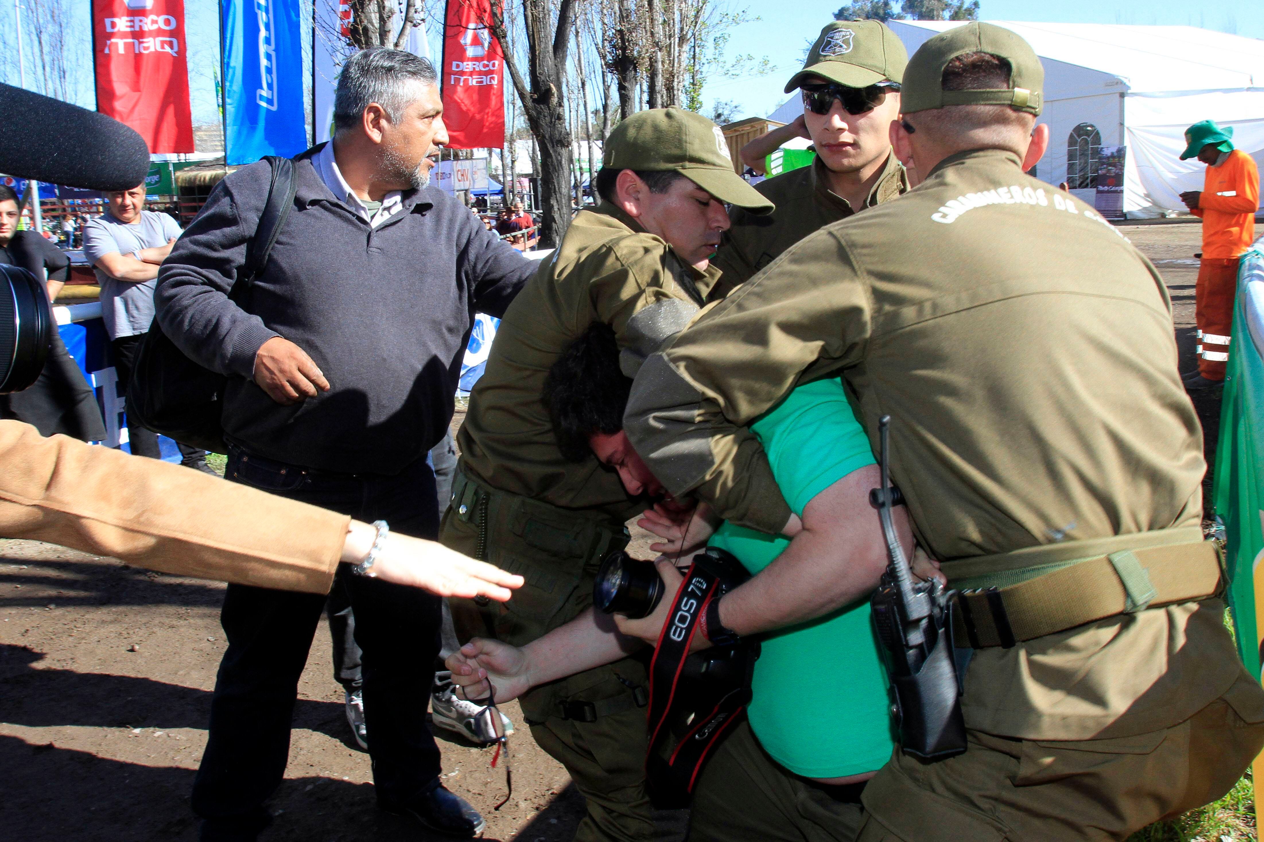 Posteriormente, en un confuso incidente, Carabineros intervino desalojando a la prensa existente en el lugar en el cual se procedió a detener violentamente al gráfico de Agencia Uno, Leonardo Rubilar, quien presuntamente habría sido agredido por la Policía.
