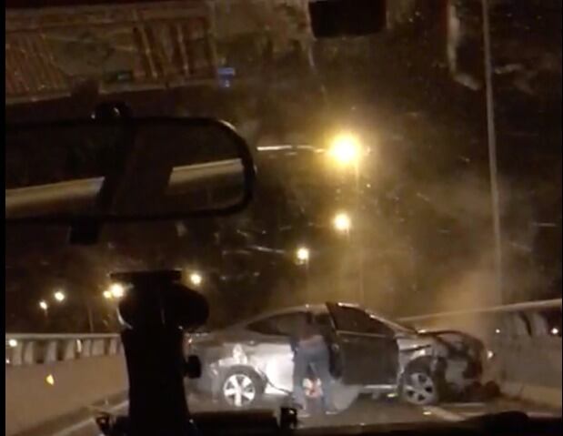 A la altura de Avenida Santa María, el conductor perdió el control de la máquina y terminó estrellándose con las barreras de contención. Esto permitió que los oficiales pudieran gritar «arriba las manos» y así detener a los delincuentes.