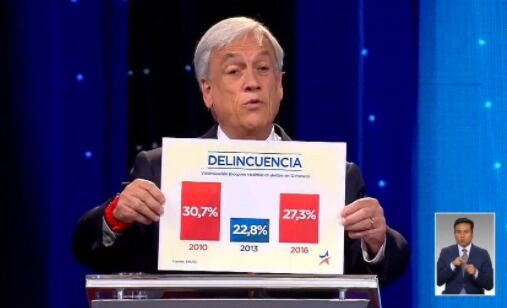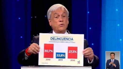 Uno de los hechos más comentados del debate presidencial de Anatel fue el gráfico que mostró el ex presidente Sebastián Piñera, en donde aseguraba que durante su gestión las cifras de victimización fueron más bajas que en los dos gobiernos de Michelle Bachelet.